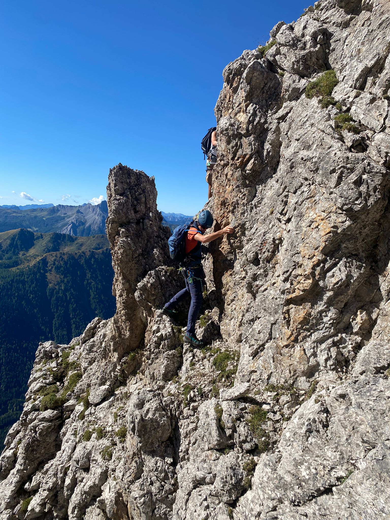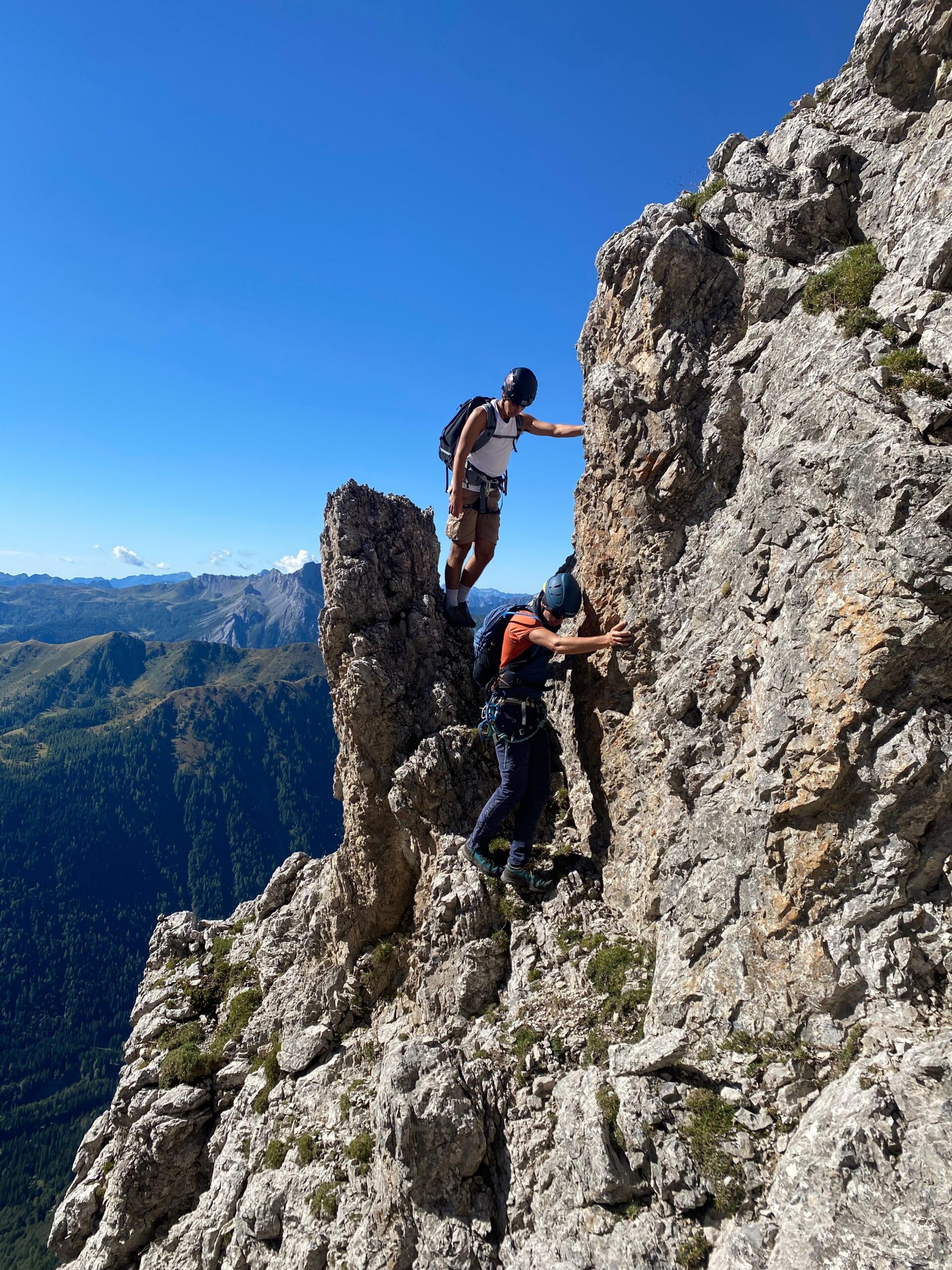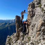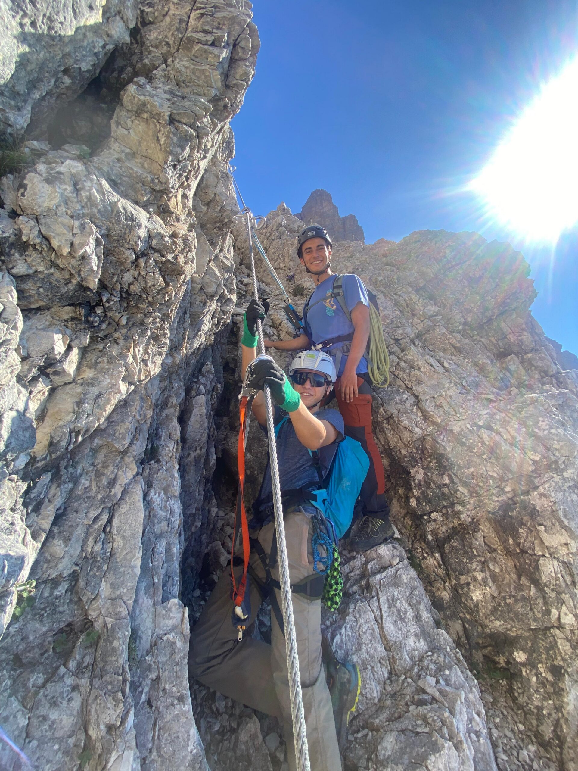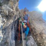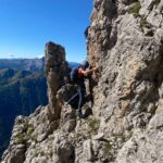 Attrezzatura tecnica personale. Calzature adeguate, casco, imbracatura, kit da ferrata; quest’ultimo può eventualmente essere noleggiato dalla Scuola.